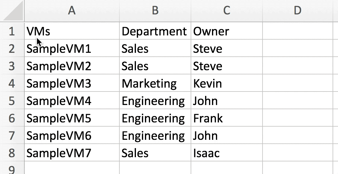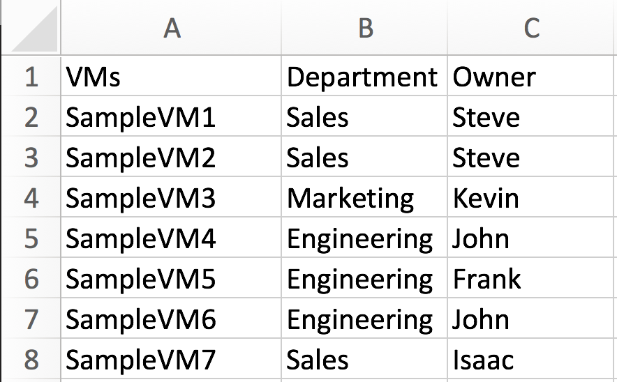 Currently we have this Excel spreadsheet of virtual machines that we need to create static groups from: